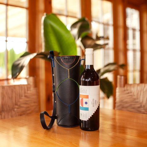 Black Doizpe wine carrier alongside a bottle of our chillable red, Scielito Lindo